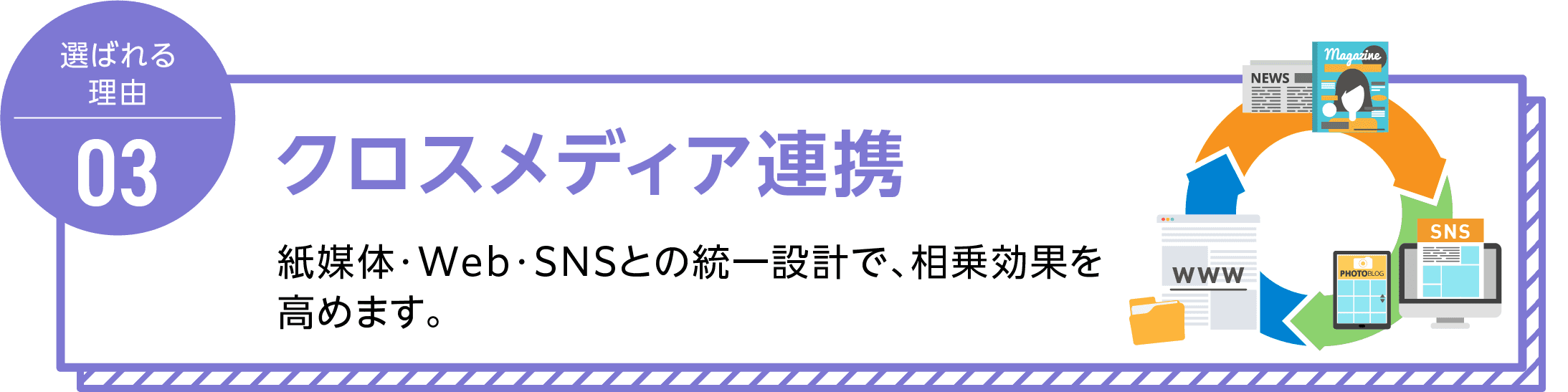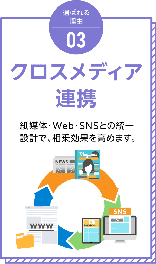 紙媒体、Web、SNSなどの連携で、ムダなく効果的な情報発信を実現。